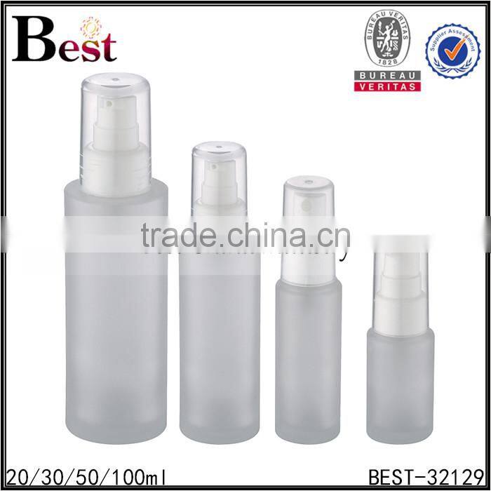China Hot Products Frosted 30ml Glass Bottle White pp Pump for Cosmetic Lotion Wholeseale