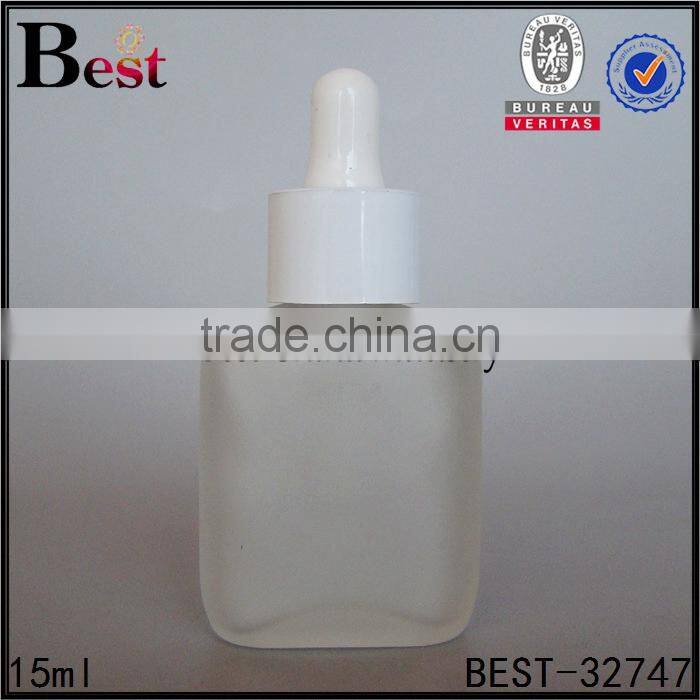 15ml China Hot Products Frosted Dropper Glass Bottle With White pp Dropper for Cosmetic Perfume Essence Oil