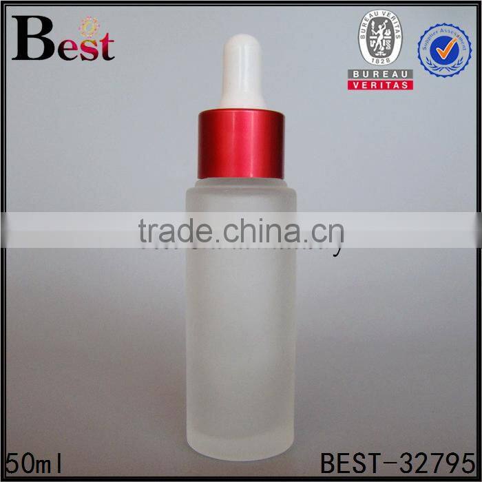 alibaba china high quality frosted cosmetic essence parfume bottle glass 50 ml red aluminum dropper bottle glass wholesale
