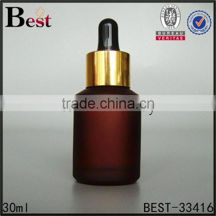 30ml high quality cosmetic essence oil perfume glass bottle big rubber gold aluminum dropper bottle glass china suppliers