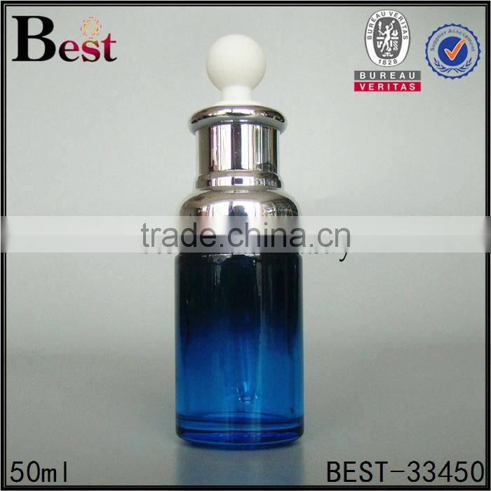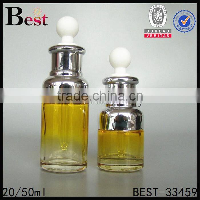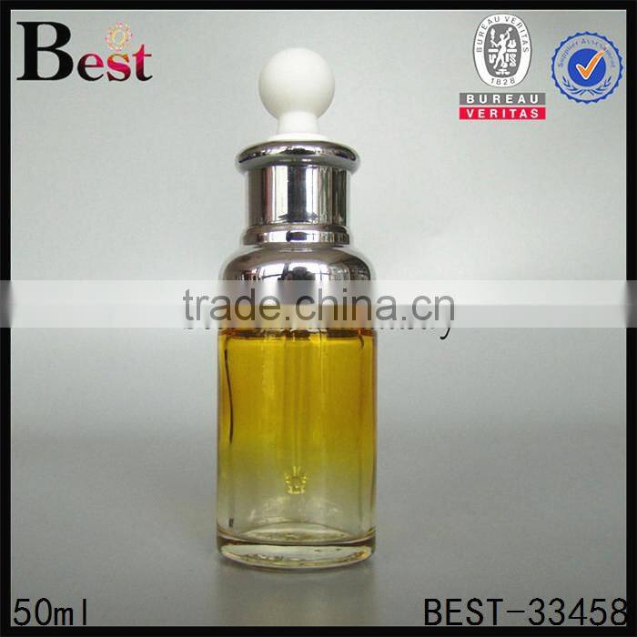 alibaba china new products fancy gradual yellow cosmetic perfume glass bottle 50ml silver aluminum dropper bottle glass