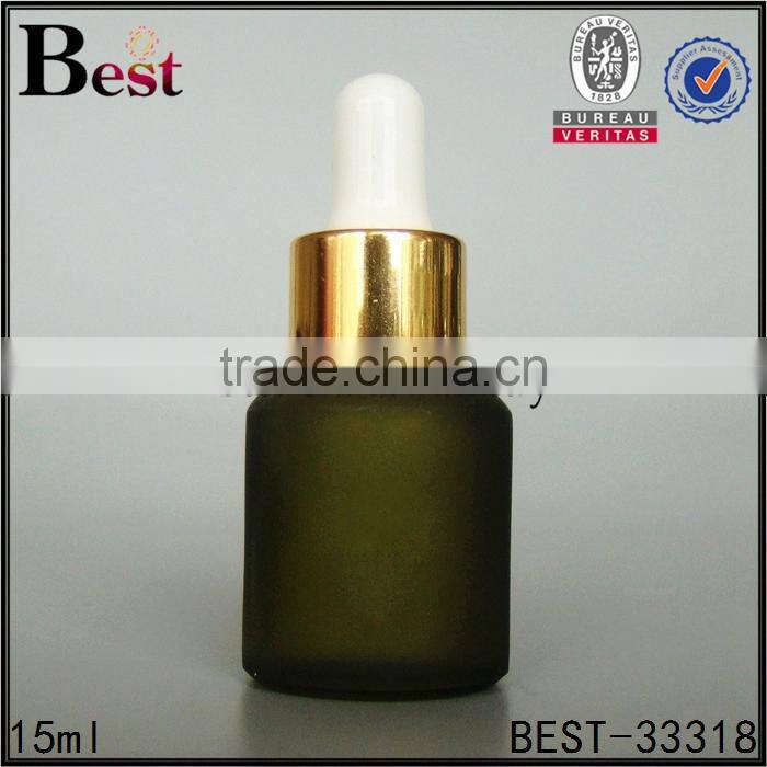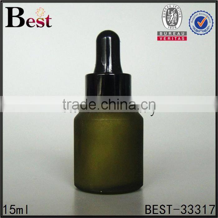 15ml high quality small green frosted cosmetic perfume essential oil glass bottle black plastic dropper china suppliers