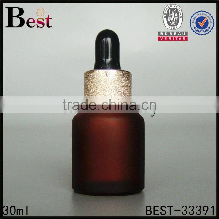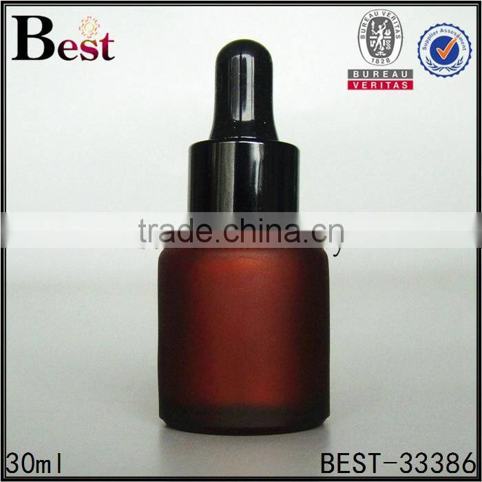 alibaba china cosmetic essential oil fragrance perfume dark red frosted 30ml glass bottle with black plastic dropper