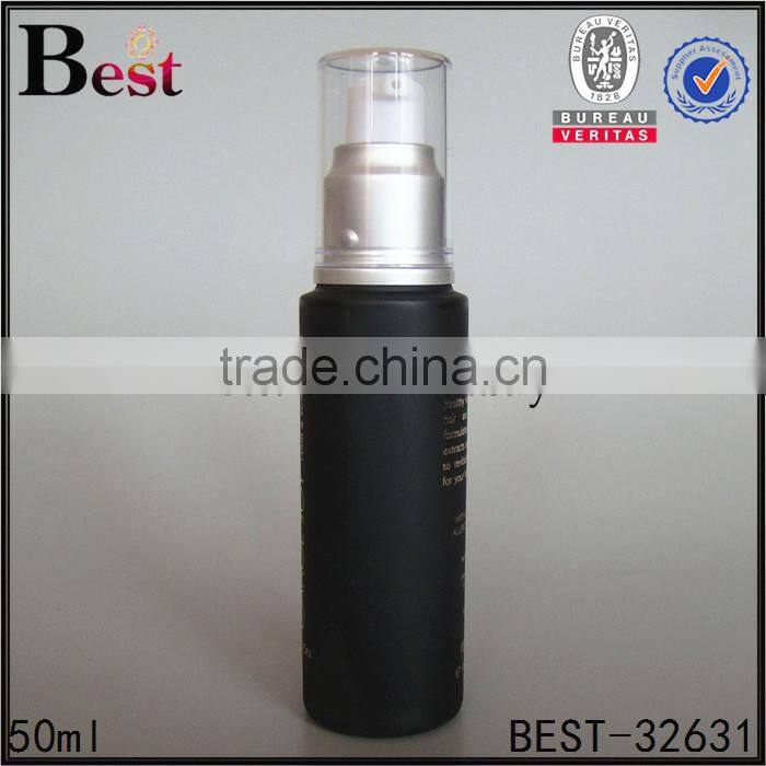 cosmetic packaging best sale 50ml black frosted lotion glass bottle with matte silver aluminum pump pet cover china suppliers