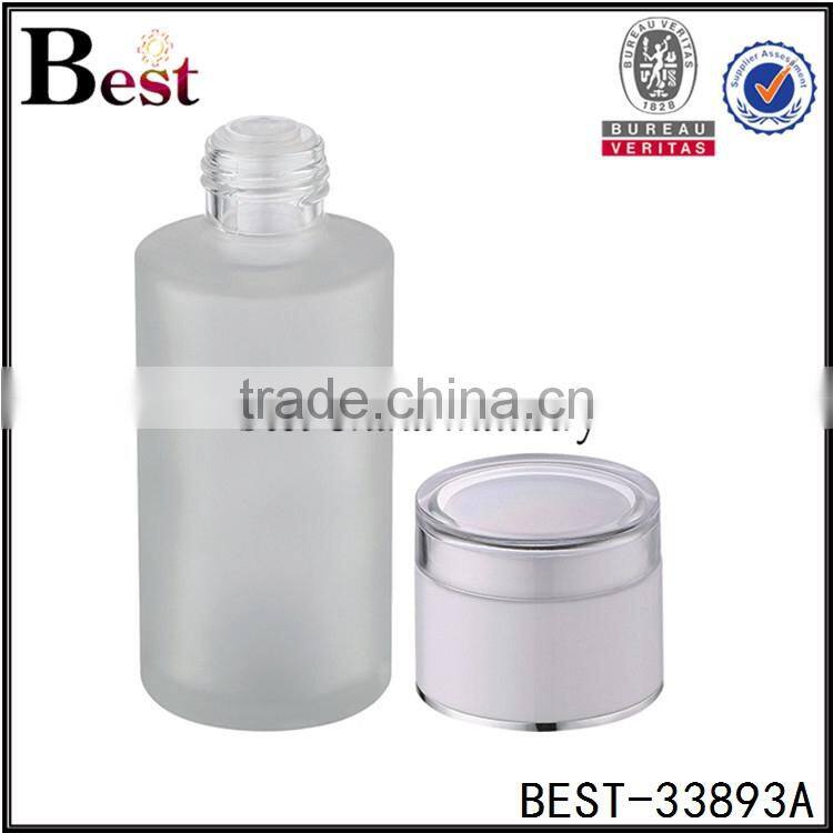 alibaba china cosmetic hot products 30 100ml frosted glass bottle for water cosmetic toner with plastic cap and insert