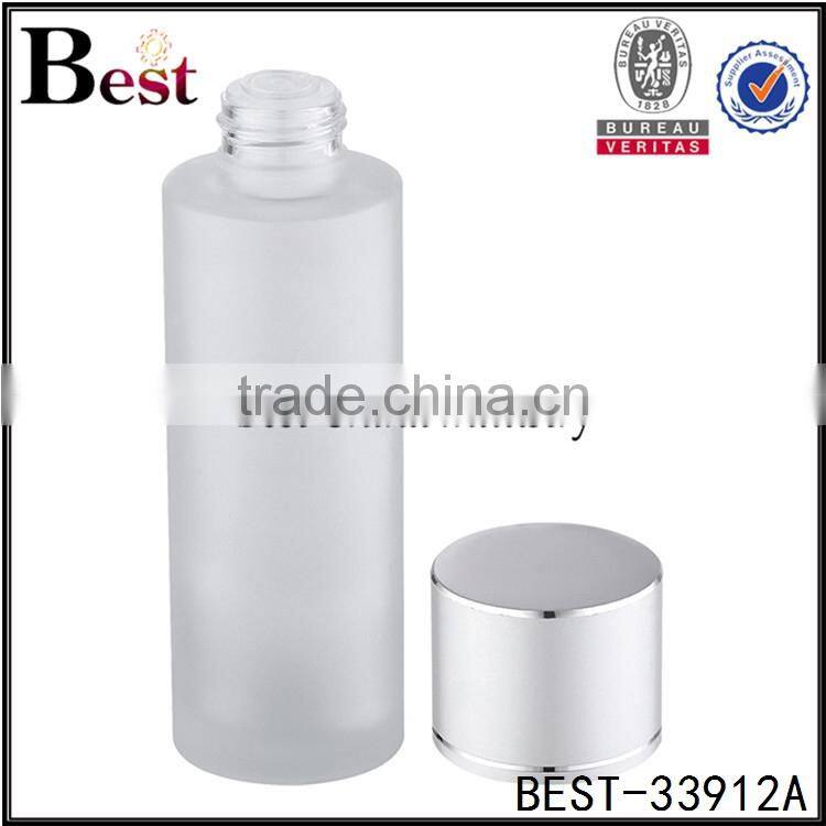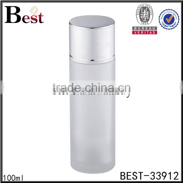China Hot Products Frosted 100ml Lotion Cosmetic Toner Glass Bottle With Silver Aluminum Cap and Insert