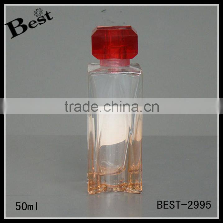 alibaba best sellers cosmetic packaging beautiful crystal glass bottle 50 ml rectangle perfume bottle glass with red plastic cap