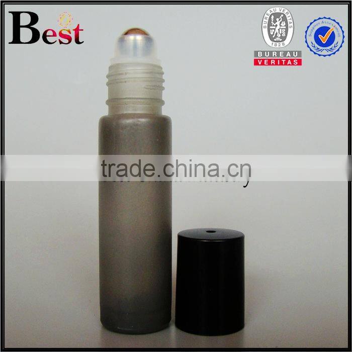 Best Sale Fancy Gray Frosted Glass Bottle 10 ml Roll on Perfume Bottle Glass With Stainless Steel Roller Bulk Buy From China
