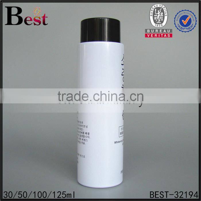alibaba china cosmetic 30ml 50ml 100ml white glass bottle silk screen printing bottle glass with black cap for lotion toner