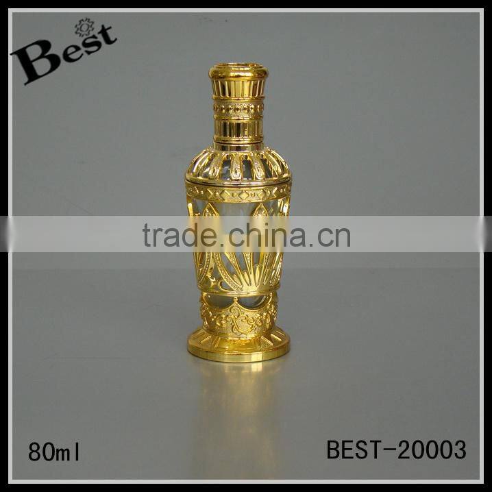 80ml new products high quality gold metal outside bottle glass inside fancy cosmetic perfume luxury glass bottle china suppliers