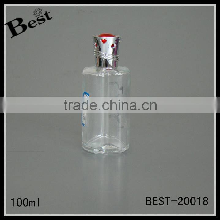 alibaba china 100ml cosmetic perfume glass bottle with silver aluminum lid heart shaped bottom bottle glass best selling