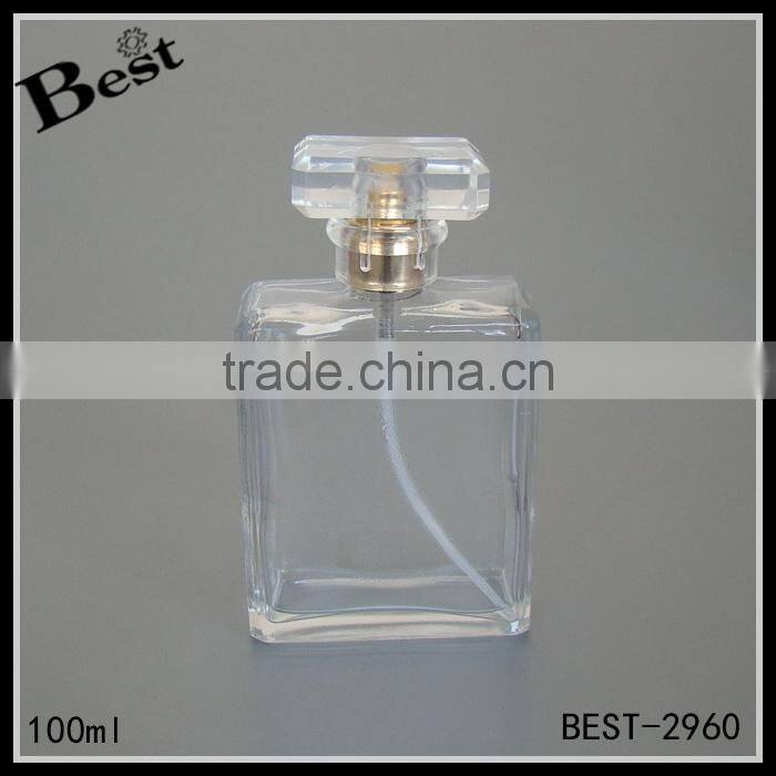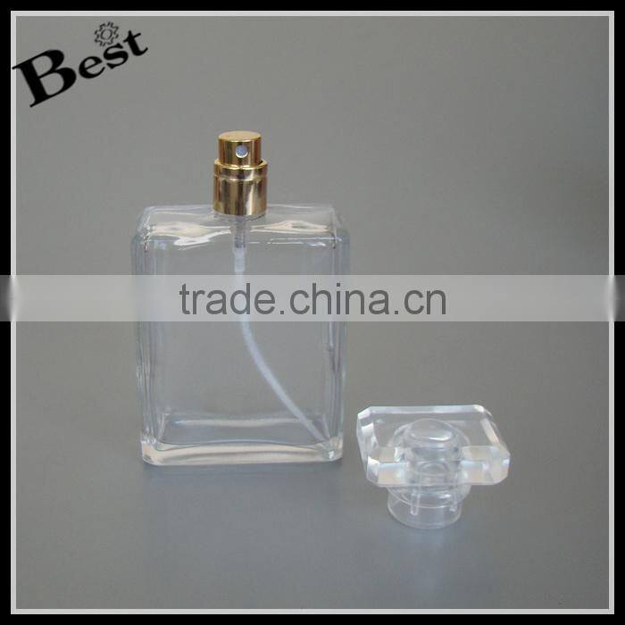 100ml simple best sale cosmetic clear empty square glass perfume bottle with golden metal spray plastic cap bulk buy from china
