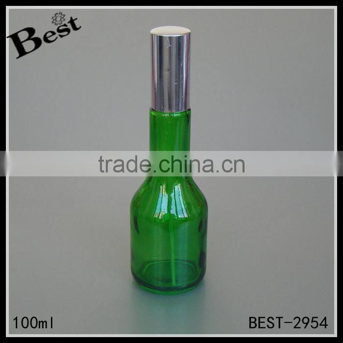 cosmetic packaging green long neck glass perfume bottle 100ml with silver aluminum spray and cover china suppliers wholesale
