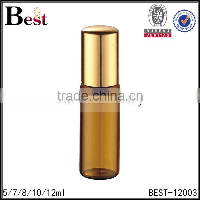 5ml 7ml 10ml roller bottle amber essential oil glass roll on bottle with stainless steel roller ball with aluminum cap