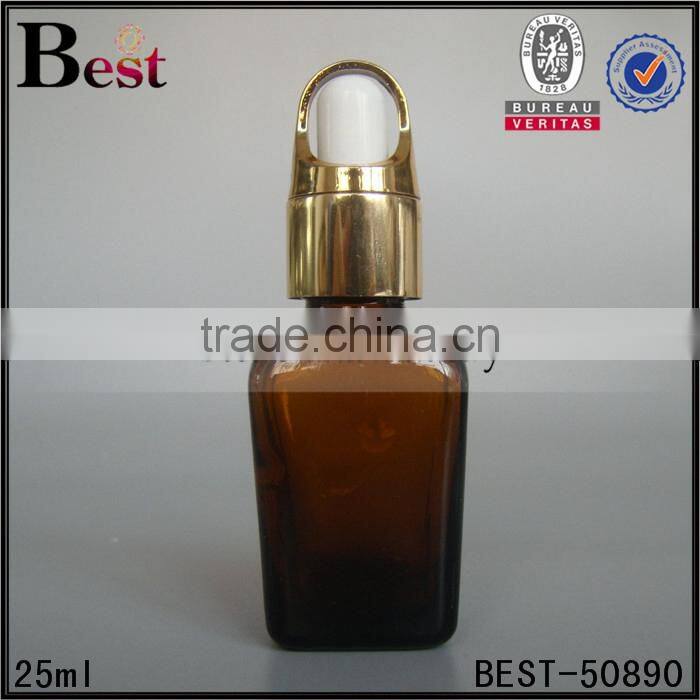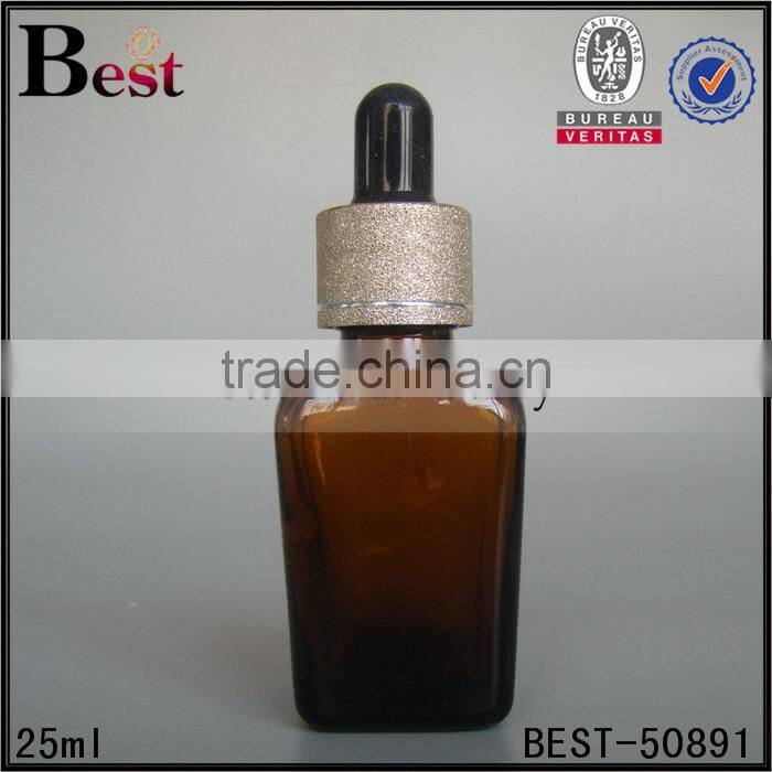 25ml Amber Square Glass Oil Bottle Essential Oil Glass Bottle With Dropper Cap