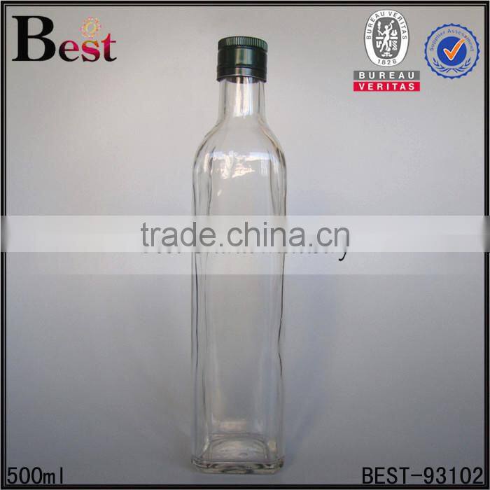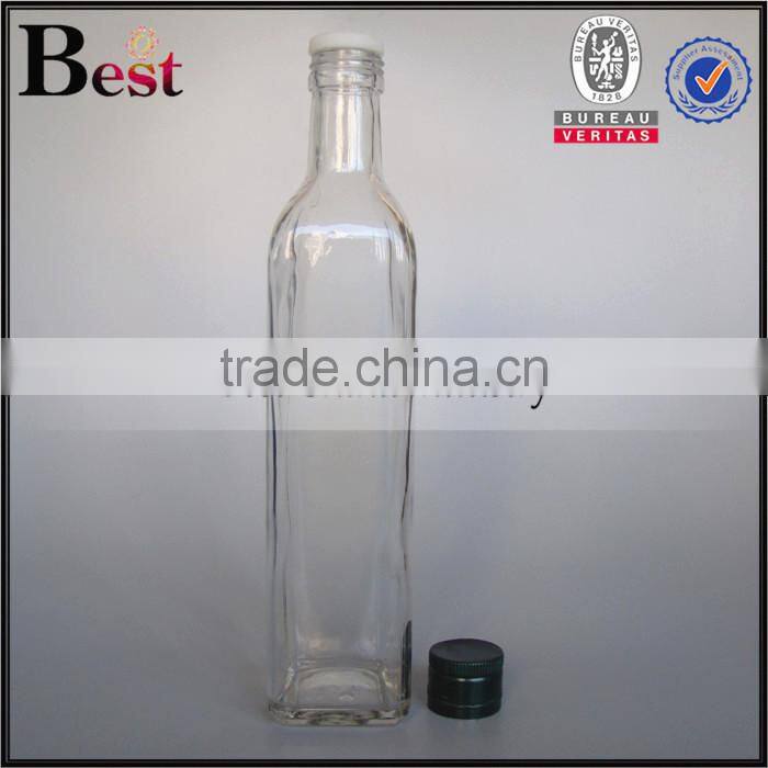 250ml 500ml Clear Empty Aluminum Cap Square Marasca Glass Bottle Olive Oil Bottle Cooking Oil Screen Printing Wholesale