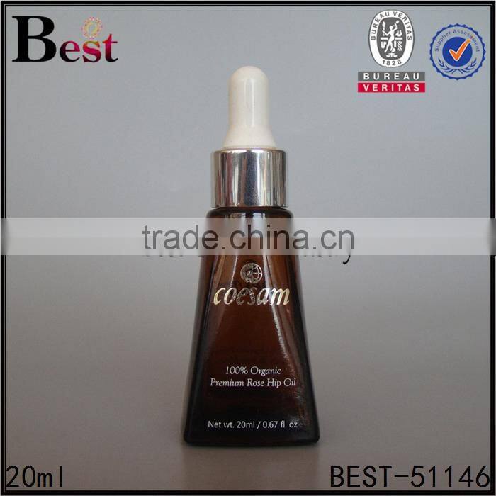 20ml amber pyramid shape brown glass dropper bottle for essential oil |