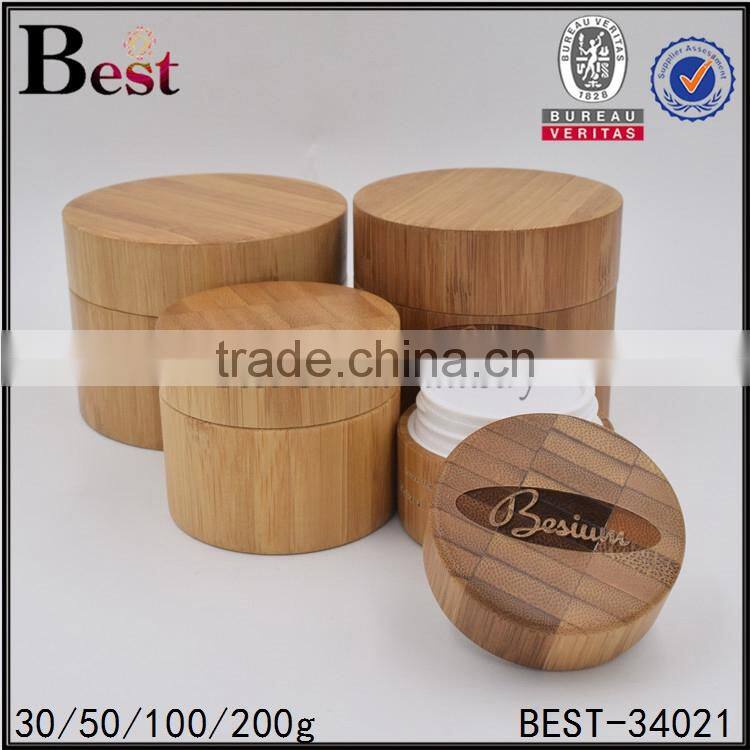 30g bamboo cosmetic double wall plastic jar PP inner jar with bamboo shell for face cream