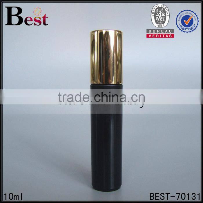 cosmetic mini fragrance perfume essential oil golden aluminum outer cover black 10ml plastic bottle roll on wholesale