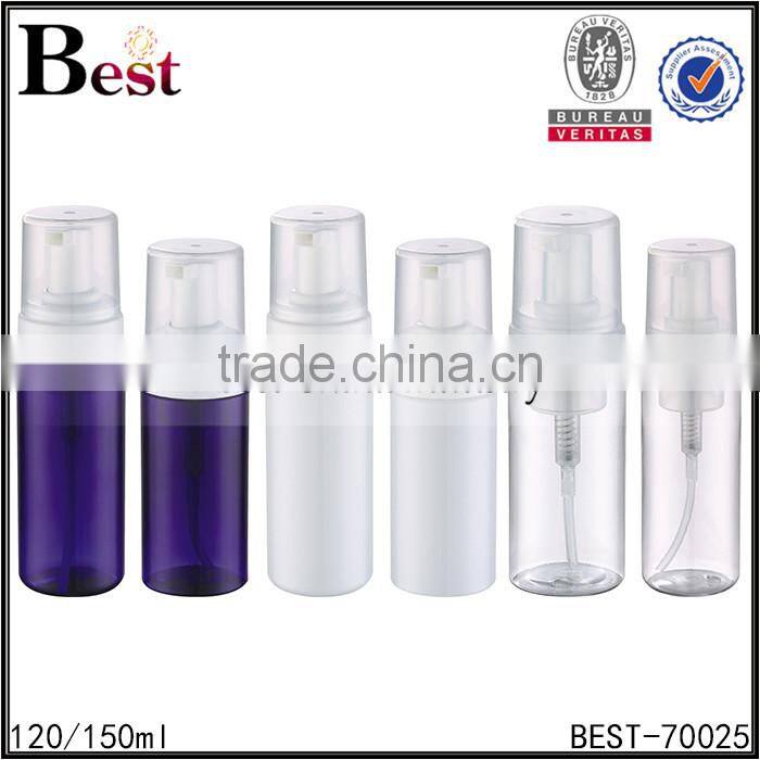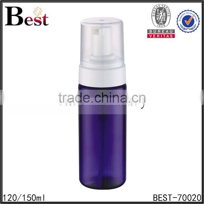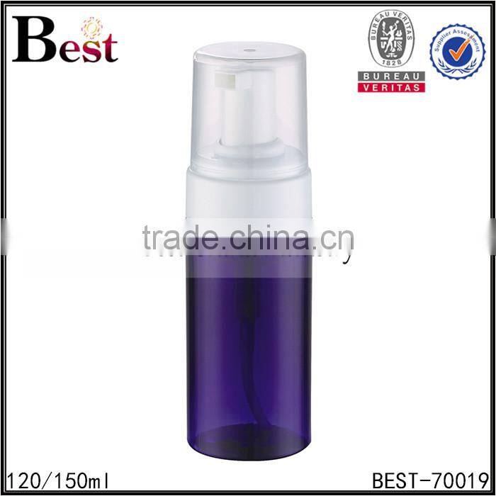 cosmetic 2017 hot new products purple pet cleanser 150ml plastic bottle white pp foam pump plastic bottle 150ml wholesale