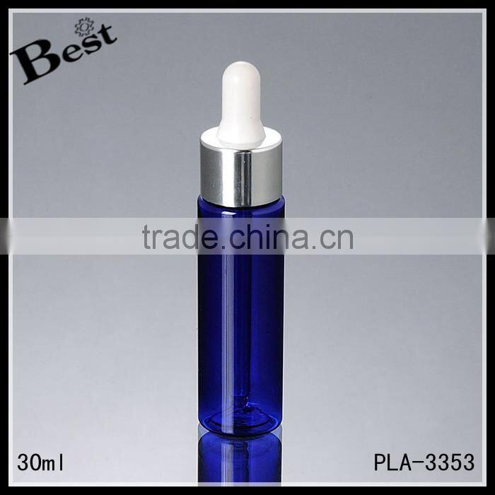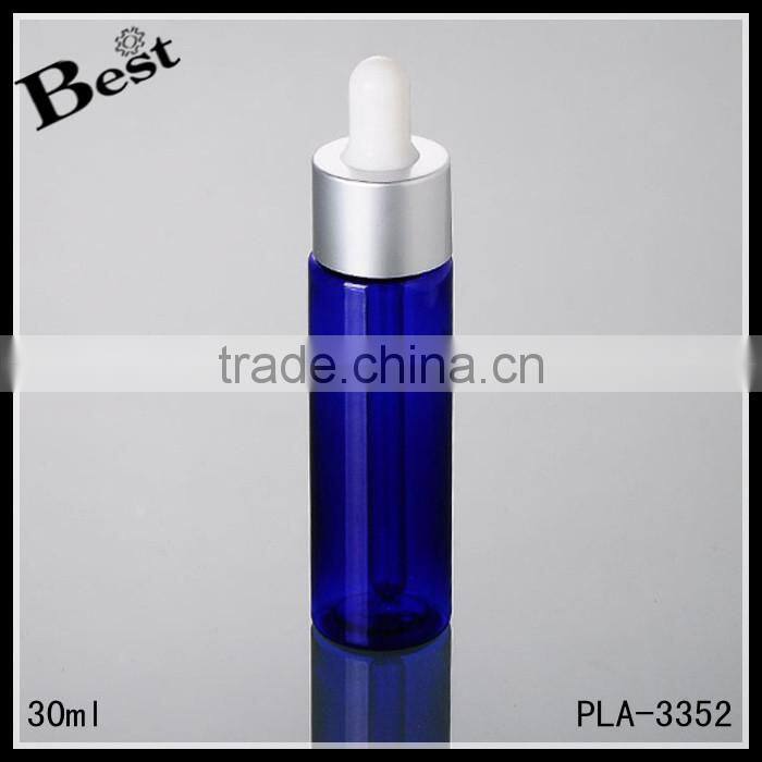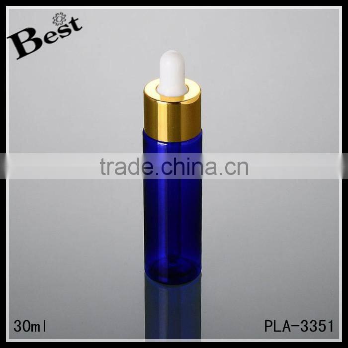 Wholesale Promotion Cosmetic Blue Pet Golden Aluminum Perfume Essential Oil Beard Oil 30ml Plastic Dropper Bottle