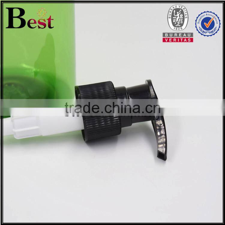 Cosmetic packaging round shoulder shampoo lotion essential oil beard oil detergent green 500ml clear plastic bottle with pump