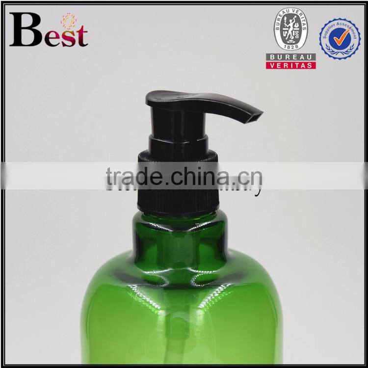 Cosmetic Packaging Round Shoulder Shampoo Lotion Essential Oil Beard Oil Detergent Green 500ml Clear Plastic Bottle With Pump