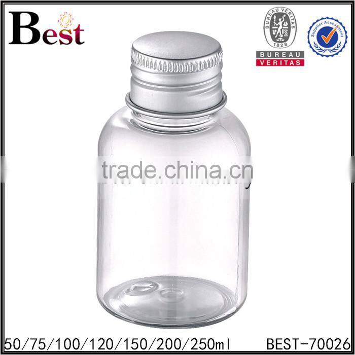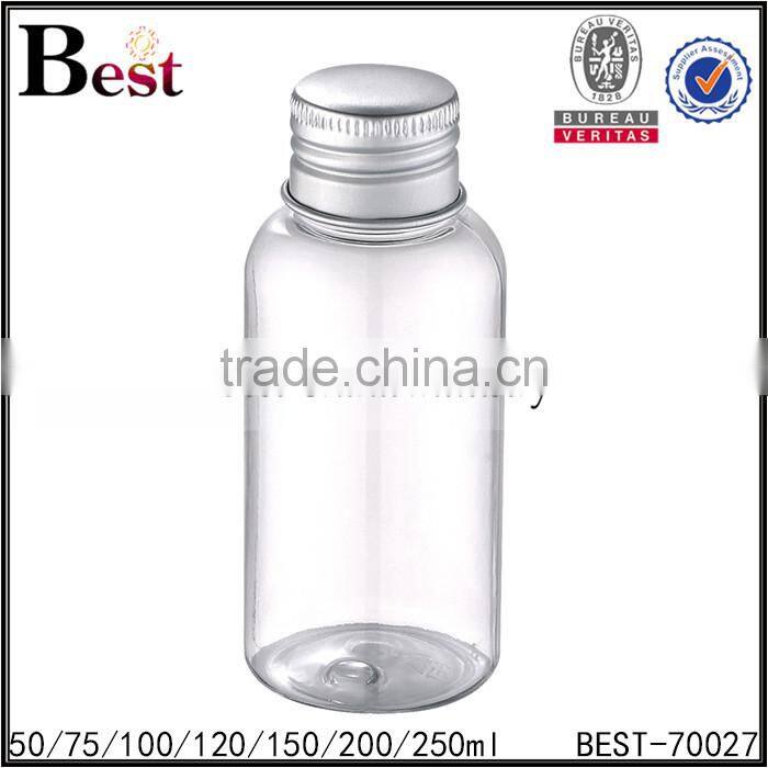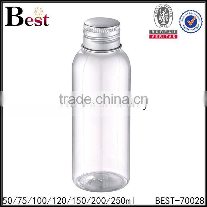 cosmetic lotion beard oil essential oil round shoulder PET screw cap clear 100ml plastic bottle for oil 2017 hot new products