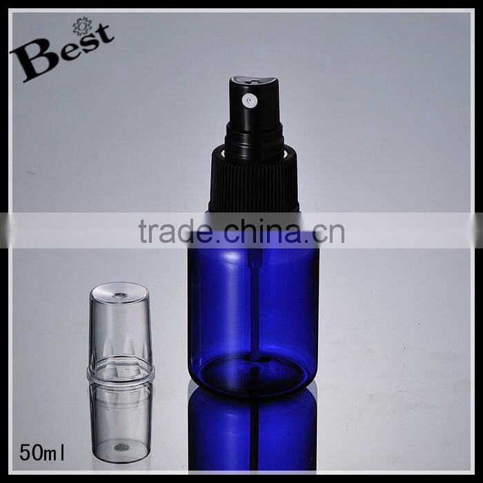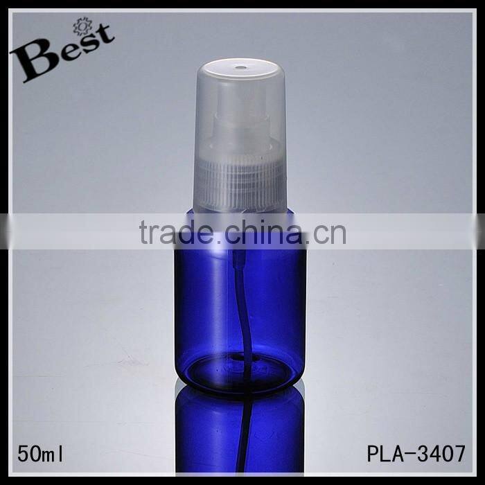 Cosmetic Toner Fragrance Perfume 2017 Hot New Products Round Shoulder Blue 50ml Plastic Spray Bottle Wholesale