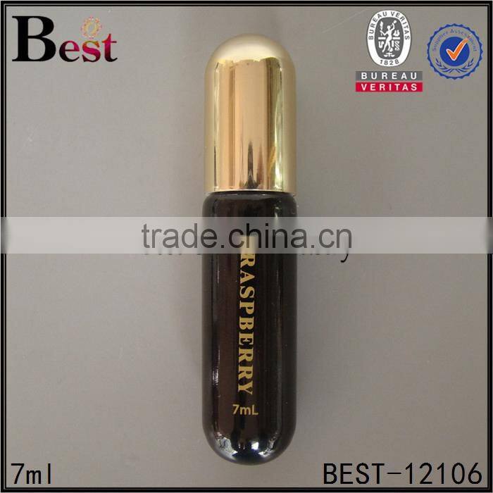 7ml hot products cosmetics perfume tube glass roll bottle hot stamping dark brown painting bullet shape roll on glass bottle