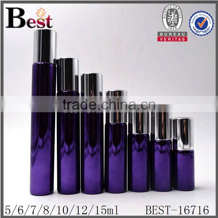 hot products cosmetic packaging dark purple UV roll on bottle 10ml perfume essential oil tube glass roll bottle factory price