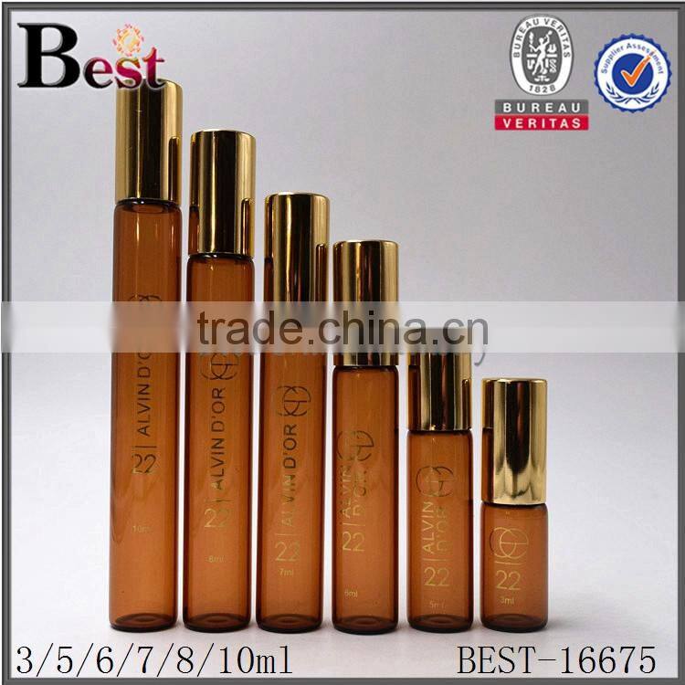 cosmetic packaging fragrance perfume essential oil long thin amber browm roll on bottle 10ml tube glass bottle roll on wholesale