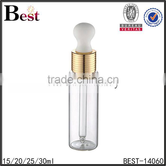 2017 hot new products cosmetic fragrance perfume glass bottle 15ml 20ml 30ml screw gold big dropper glass perfume bottle china