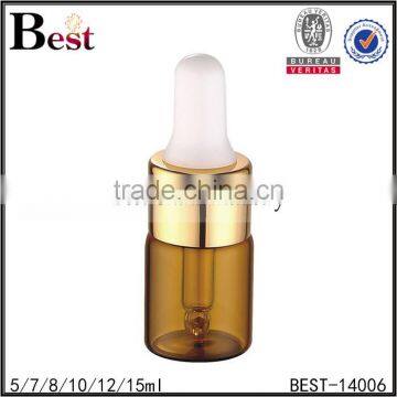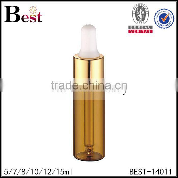 cosmetic 5ml 10ml 12ml 15ml amber empty essential oil bottle perfume glass golden aluminum dropper perfume glass bottle factory