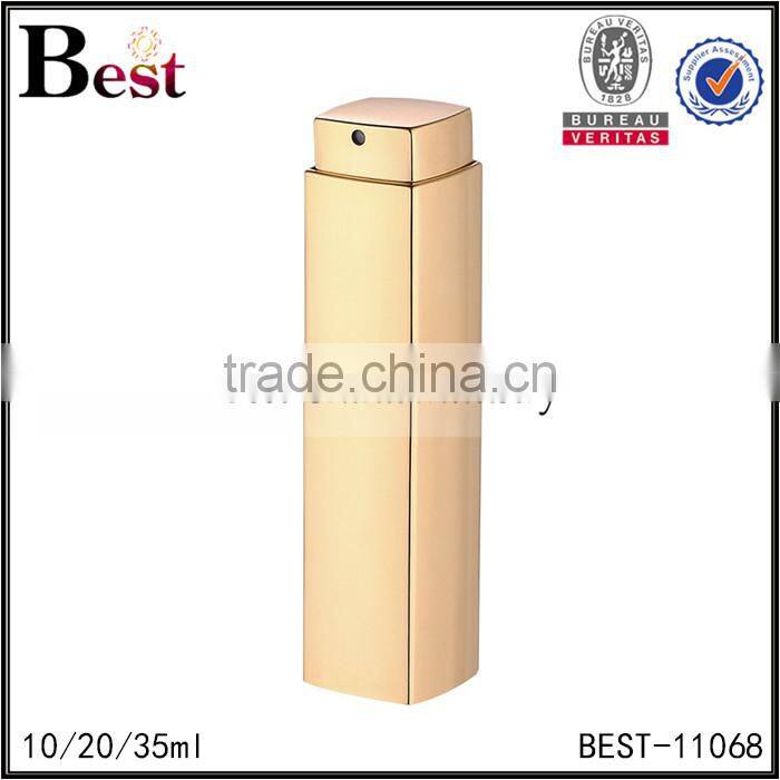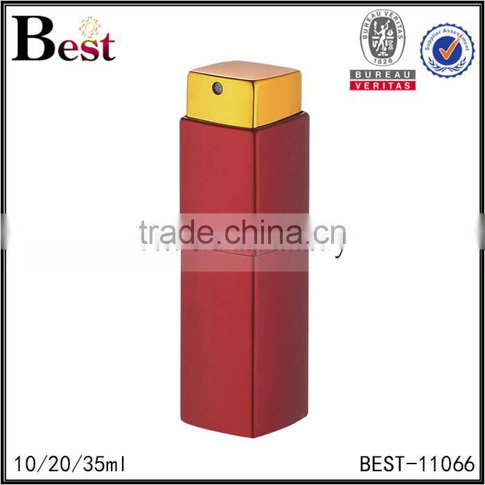 2017 hot new products cosmetic red aluminum cover glass perfume bottle 10ml 20ml 35ml spray square rotary bottle perfume