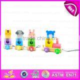 Colorful Wooden Pull Shape Block Train Toy for Kids,EN71 Top Sale Pull Line Toy Vehicle Wooden Toy Train OEM W05C025