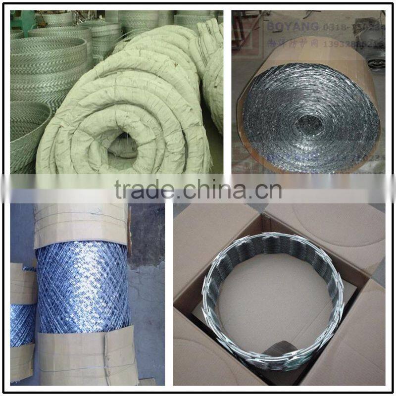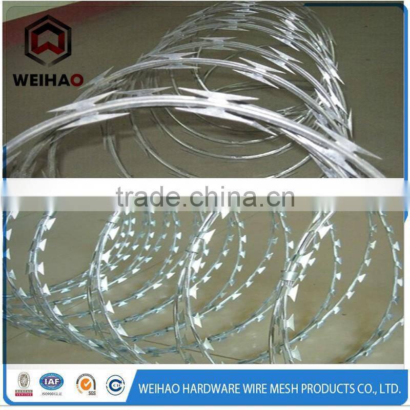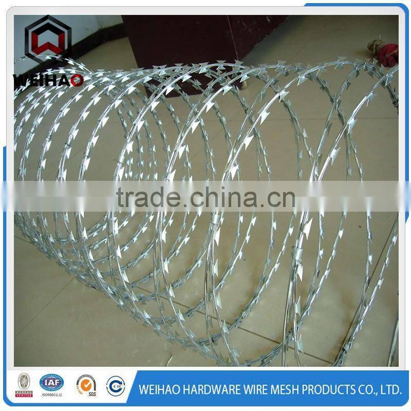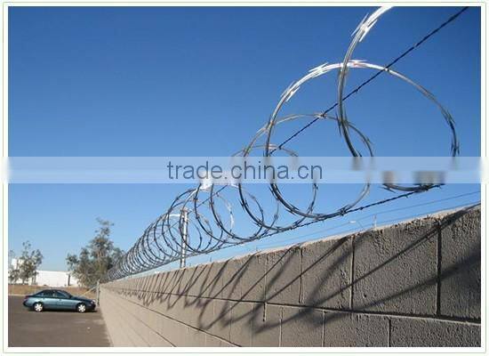 Razor barbed wire is also known as the blade barbed wire, razor wire, is a new type of protective net. Razor barbed wire has the advantages of beautiful appearance, economical and practical, prevention effect is good, construction convenience features such as superior, at present, razor barbed wire has been widely used in many countries of the industrial and mining enterprises, garden apartments, the border post, military, prison, detention, government buildings, facilities and other national security.