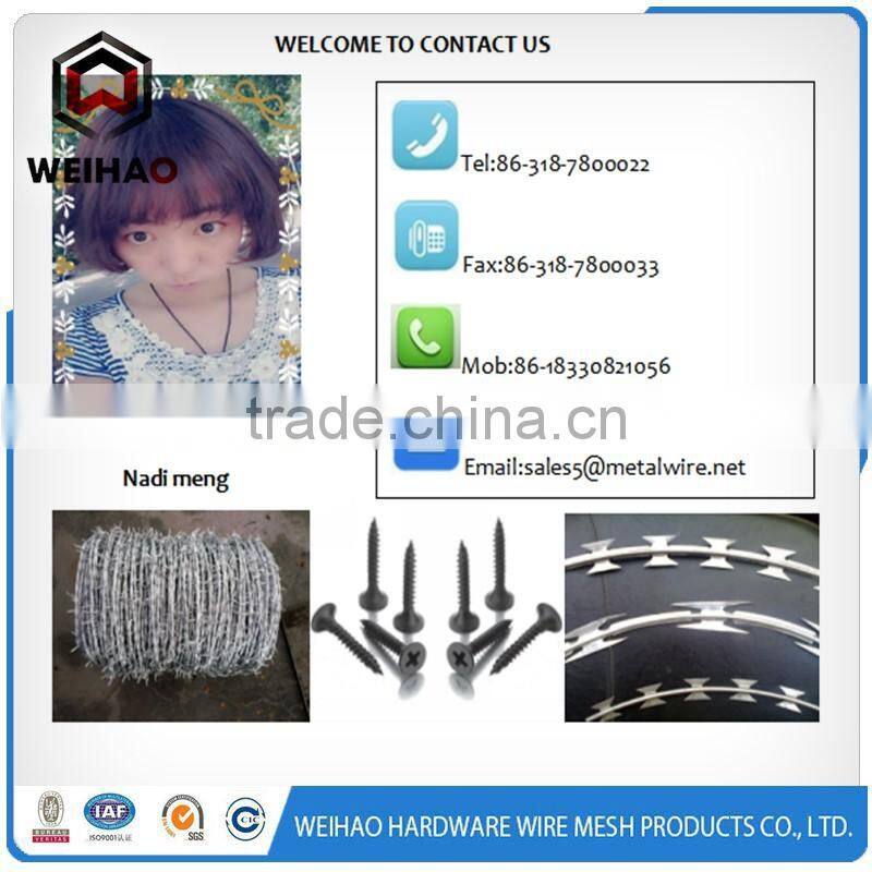 Razor barbed wire is a kind of blocking material, which is composed of blades made of galvanized steel or stainless steel plate with punching a sharp knife flake and a high tension galvanized core wire orstainless steel core wire. with its unique appearence and security, razor barbed wire can achieve excellent protection and screen effect. the mainly material of razor barbed wire are galvanized steel and stainless.We can produce any type and any specification productions as your requests.