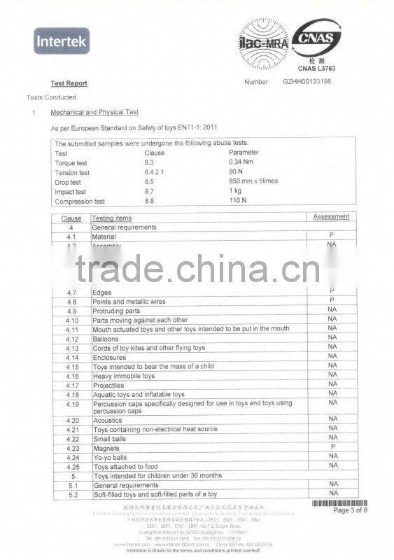 To meet the clients' requirements for quality, we supply products in compliance with most international standards, suchasEN71,EN62115,CE,ROHS,R&TTE,EMC,ASTM,HR4040,SASO and Phthalates free regulations.
