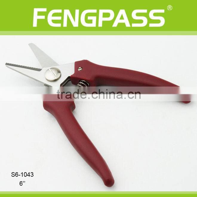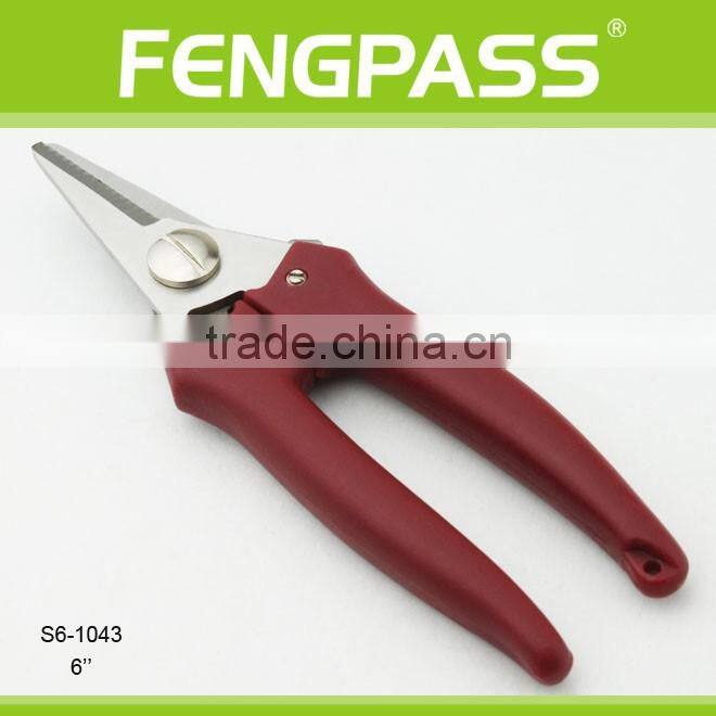 S6-1042 6-1/2'' Soft PP Handle With Stainless Steel Blade Cutting Snips Garden Scissors