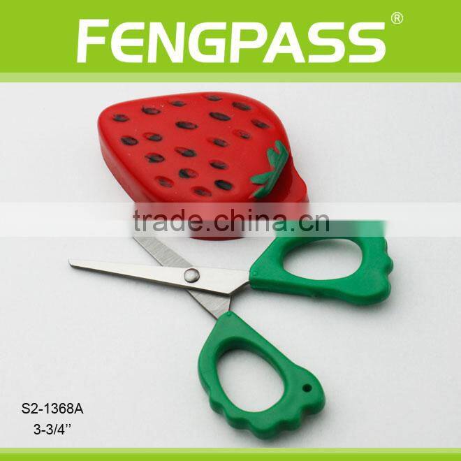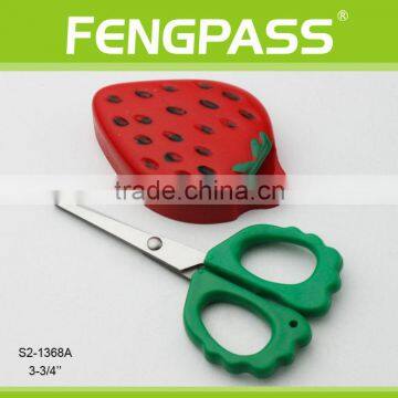 S2-1368A 3-3/4" 2CR13 Stainless Steel ABS Plastic Handle Kid Scissors / Paper Cutting Scissors With Strawberry Cap