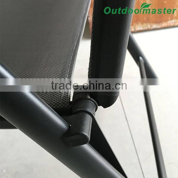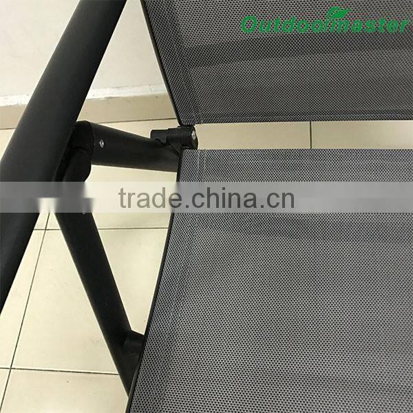 7-Position Adjustable Folding Recliner Teslin Black Aluminum Deck Chair