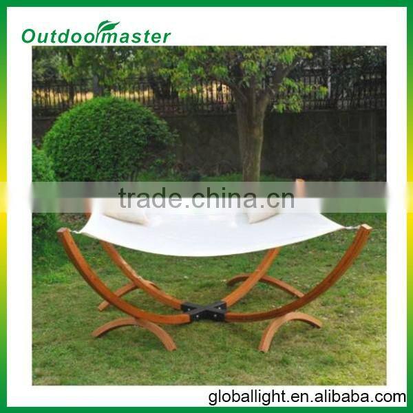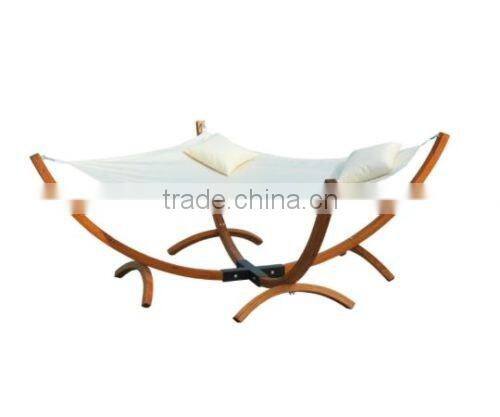 Garden Patio Wood Frame Hammock Swing Sun Bed Lounger Canopy + 2 Pillows Cream Wood