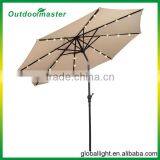 10FT Patio Beige Steel Tilt Market LED Solar Umbrella With Crank