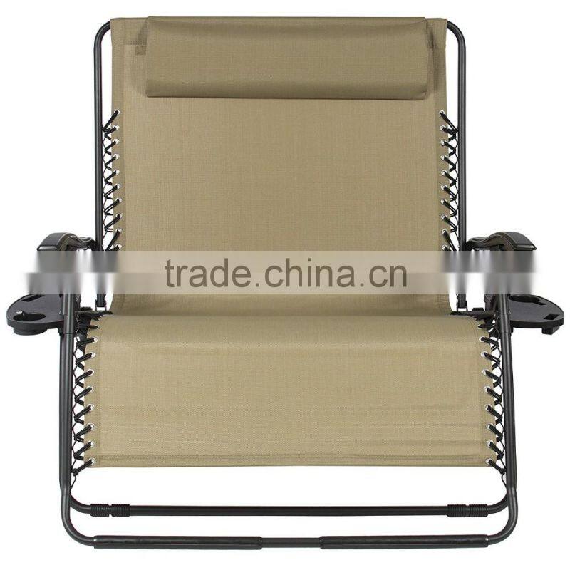 Outdoor 2 Person Double Wide Beige Folding Zero Gravity Chair