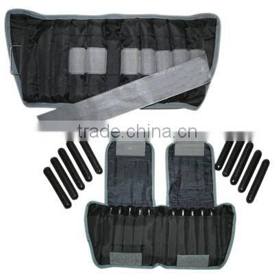 These inserts can be removed from the weight pockets to adjust the weight of the exerciser.