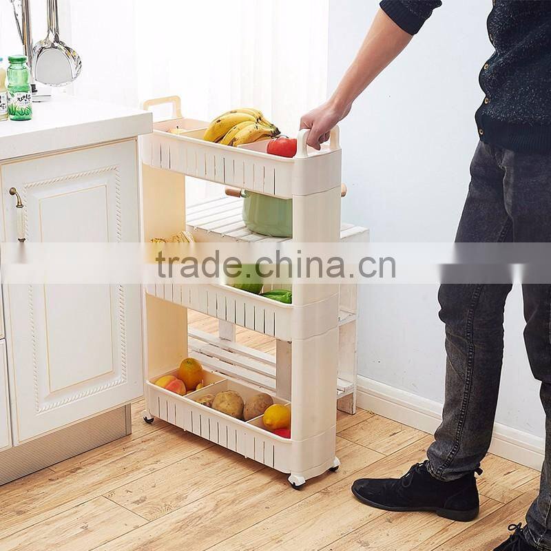 Plastic Slid Out Storage Rack/tower Folding 3 Tire With Rolling Wheels