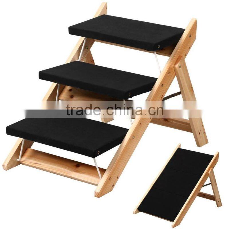 Folding Pet 2-in-1 Ramp and Stairs for Dog Cat Portable Carpet Wooden Steps Ladder