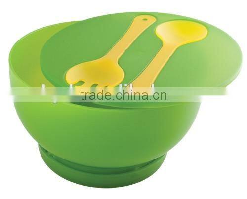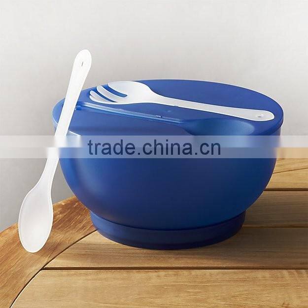 2016 wholesale plastic salad bowl with lid and severs chill bowl