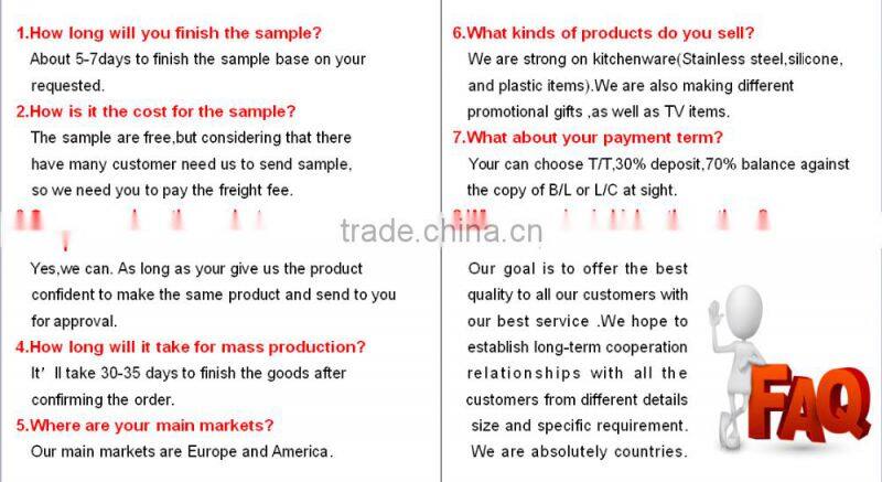 Specializing in kitchen appliance of kitchenware、houseware, such as plastic items, silicone items ,textiles and so on.